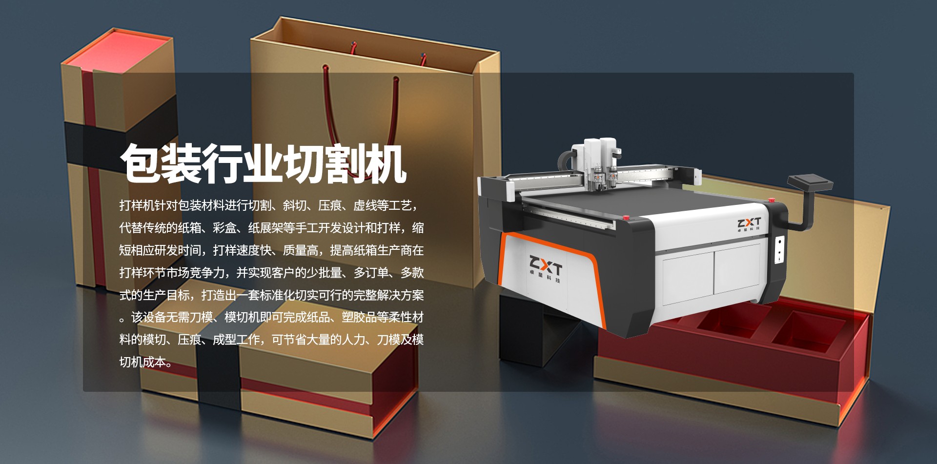 卓星包裝行業電腦打樣機針對包裝材料進行切割、斜切、壓痕、虛線等工藝,代替傳統的紙箱、彩盒、紙展架等手工開發設計和打樣,縮短相應研發時間,打樣速度快、質量高,提高紙箱生產商在打樣環節市場競爭力,并實現客戶的少批量、多訂單、多款式的生產目標,打造出一套標準化切實可行的完整解決方案。該設備無需刀模、模切機即可完成紙品、塑膠品等柔性材料的模切、壓痕、成型工作,可節省大量的人力、刀模及模切機成本。